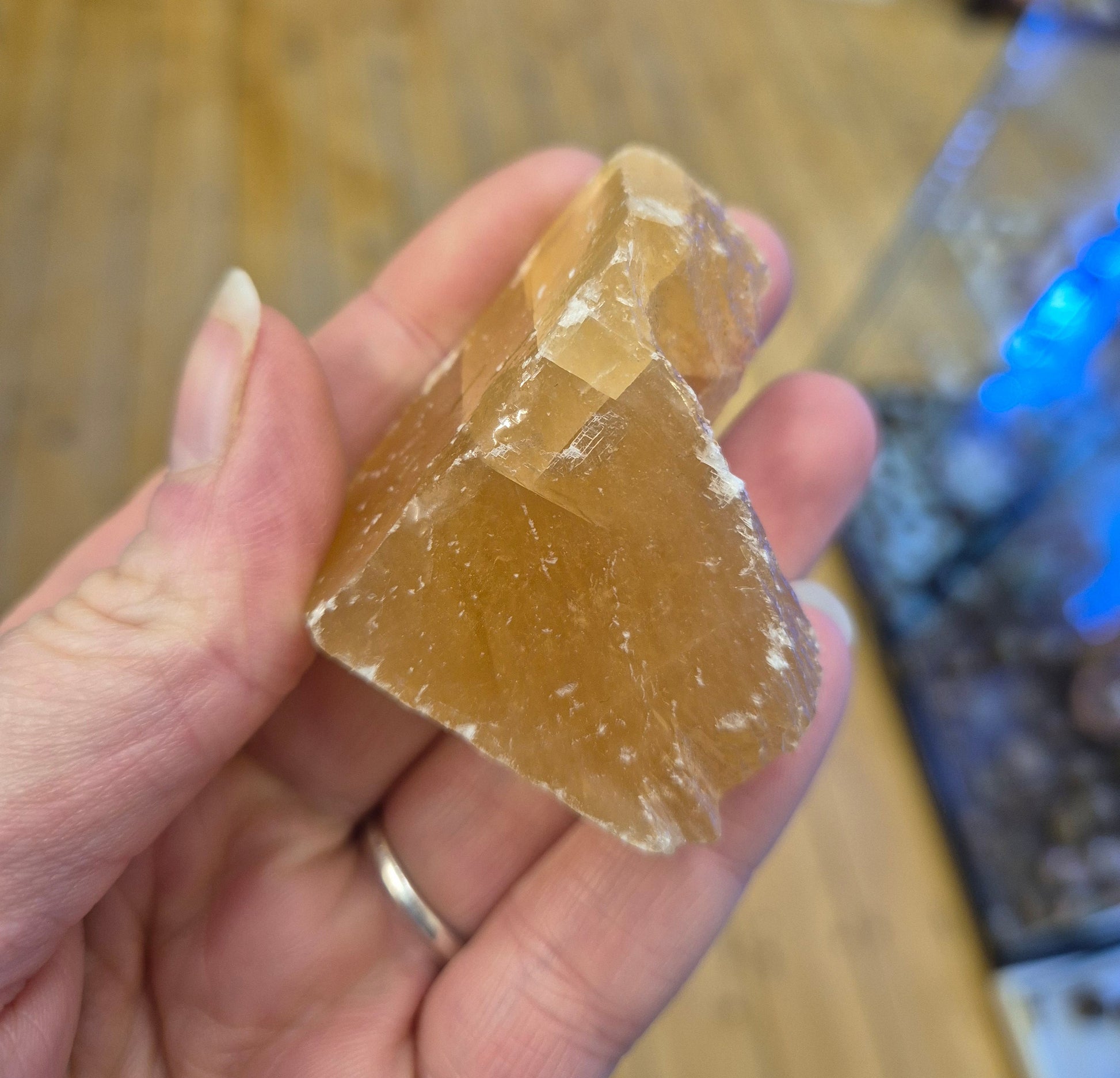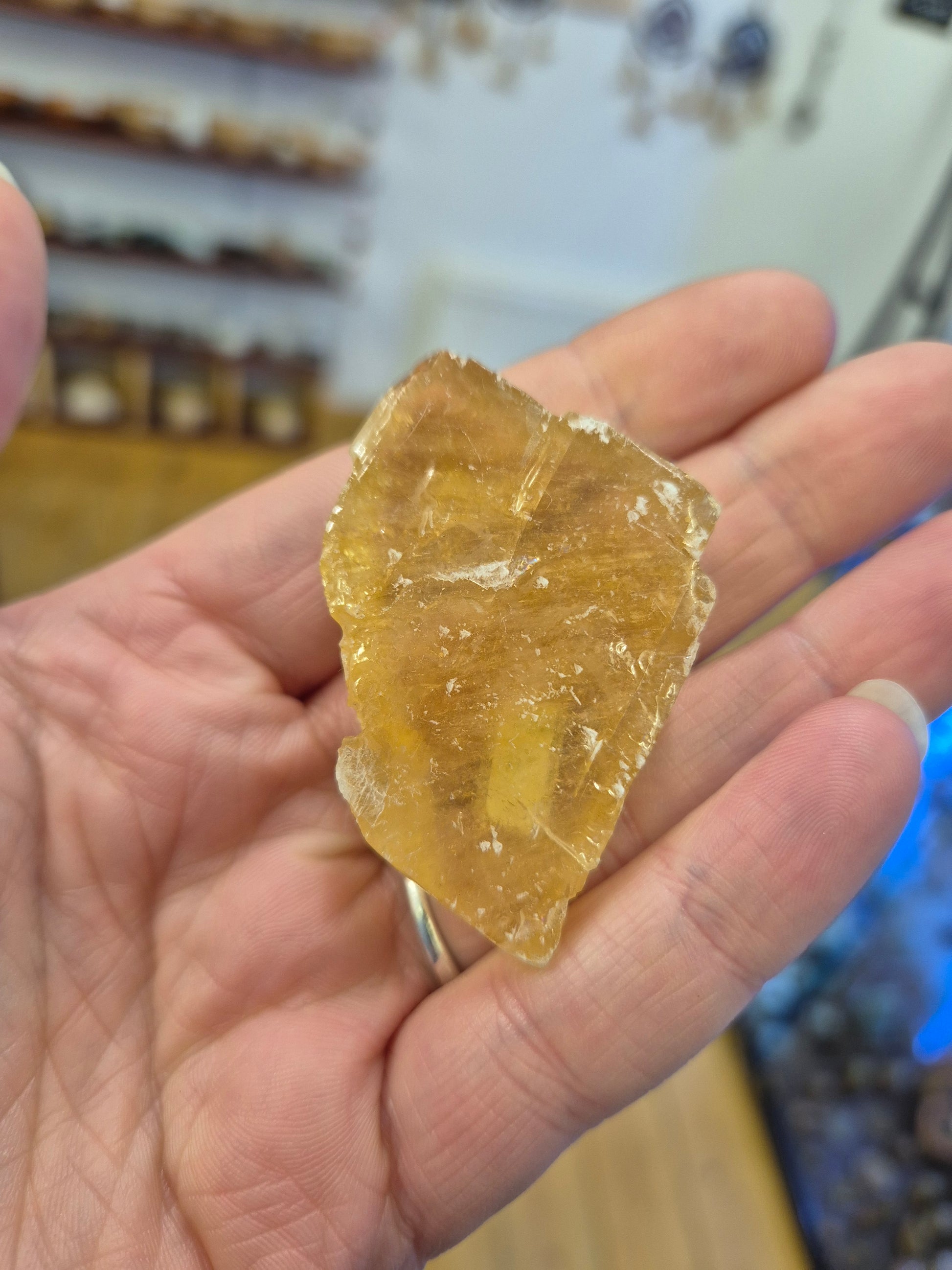 Honey calcite is a calcium carbonate mineral that occurs in masses and rhombohedral forms. Calcite comes from the Greek word ‘calix’ meaning Lime and is one of the most abundant minerals on earth. The most significant deposit for honey calcite is located in Mexico. Honey calcite teaches us about the right use of power. It encourages responsibility in leadership and can help with recovering from abusive situations. Honey calcite increases feelings of self-worth, confidence and courage and assists to overcome obstacles. It is helpful for learning of all types and developing skills. This crystal is felt upon first touch, providing the user with a link to mother earth’s energies. This stone relaxes our minds and pivots it to focus on the problem at hand with practical approaches. Honey calcite works well with other manifestation stones such as tigers iron, citrine, tiger’s eye & bumblebee jasper.
